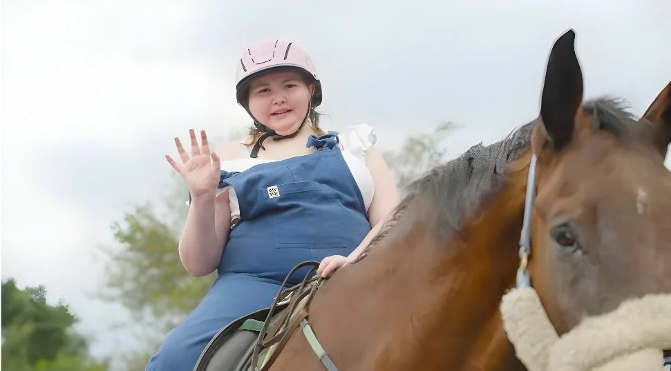 Grace is learning to recognize each horse’s personality and how to communicate with them under saddle. She continues to make steady progress steering independently, a milestone that reflects her growing confidence.