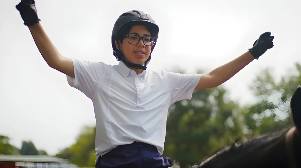 Jariel is a bright teenager with exceptional academic strengths, consistently earning top grades in school. He began therapeutic riding at GallopNYC at age 5 to support his socialization, motor control, sensory processing and speech. His weekly lessons have become a meaningful part of his growth, offering steady progress and a place where his confidence continues to deepen.