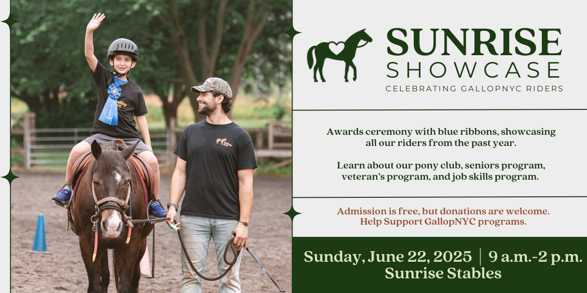 Sunrise Showcase Sunday, June 22, 2025 9:00 AM 2:00 PM Sunrise Stables 80-98 Linden Boulevard Queens, NY, 11414 United States (map) Google Calendar ICS